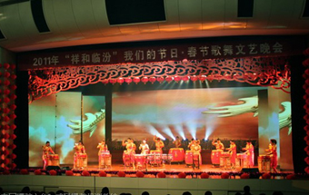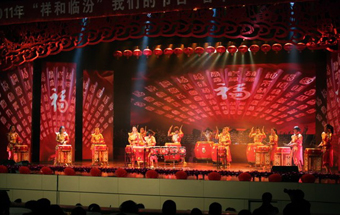 2011年元月31日由我处16名专业鼓乐演奏员,参加了2011年临汾市春节联欢晚会,参加的曲目是《龙腾虎跃》受到市领导及观众的很高的评价。